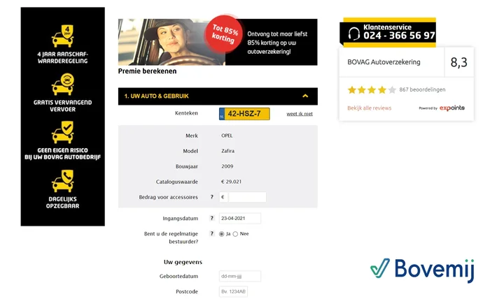 Verzekeringen verkopen via partners, dat is iets waar Bovemij goed in is! Met het Novusoft platform zijn verzekerings aanvraagstraten voor partners als Hyundai, Peugeot en Bovag gerealiseerd. De uitkomst: een in de kern identiek en gebruiksvriendelijk aanvraagformulier met partner-specifieke aanpassingen op het gebied van bijvoorbeeld (huis)stijl en vraagstelling. Met Novusoft kunnen dit soort partner applicaties, met generieke onderdelen en partner specifieke onderdelen, efficiënt ontwikkeld en beheerd worden.