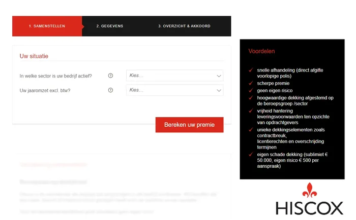 Met het Novusoft platform zijn verschillende aanvraagstraten voor de zakelijke verzekeringen van Hiscox ontwikkeld. De zakelijke verzekeringen kunnen direct op de website van Hiscox worden aangevraagd waarbij een intermediair moet worden gekozen. Ook kunnen de aanvraagstraten gemakkelijk op de website van intermediairs worden geplaatst.